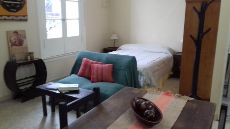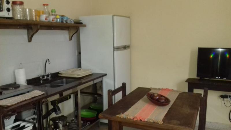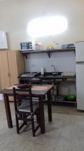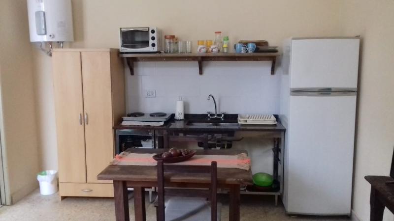 Comodidades: Cuenta con cama doble, mesitas de luz, placard, aire acondicionado, cocina tipo kitchinet, con heladera con freezer, microondas, anafe electrico, y varios utensilios. Tv con cable, mesa para dos personas,sofa pequeno. bano completo con ducha.