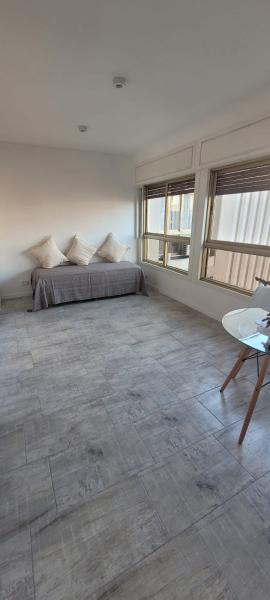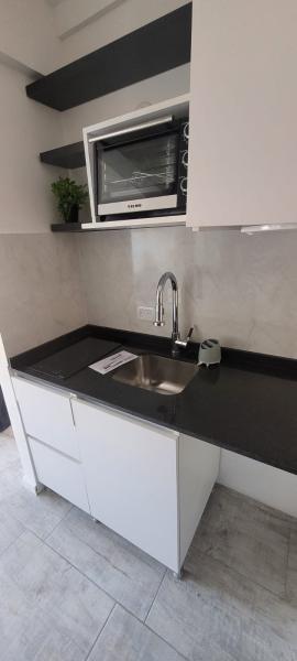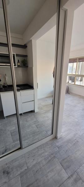 Comodidades: El departamento cuenta con cama single, mesita con 2 sillas, horno electrico, anafe electrico, bajomesadas, alacena, placard con espejos, bano con ducha. Edificio con seguridad 24hs.