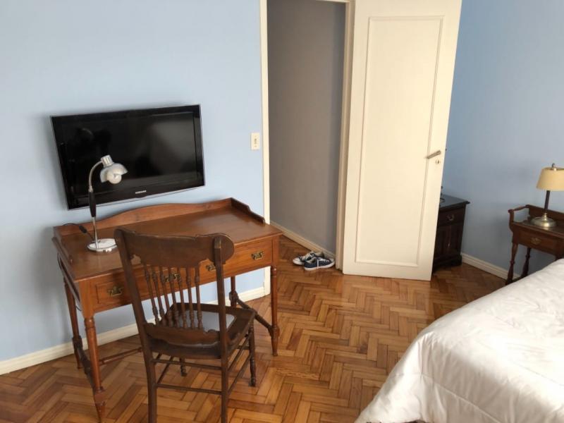 Comodidades: El Departamento cuenta con Living comedor con juego de comedor acceso al balcon y living completo con Tv. Dormitorio principal con cama matrimonial. Segundo dormitorio con dos camas individuales. Tercer dormitorio con cama individual. Todos con placard. Cocina comedor reciclada a nuevo con ingreso de servicio, cuenta con cocina con horno, heladera con freezer, microondas, mesa con sillas, alacenas bajo mesada y elementos varios para cocinar, lavarropas, dependencia de servicio con bano con ducha totalmente reciclado. Bano principal y toilette. Aire acondicionado. Balcon