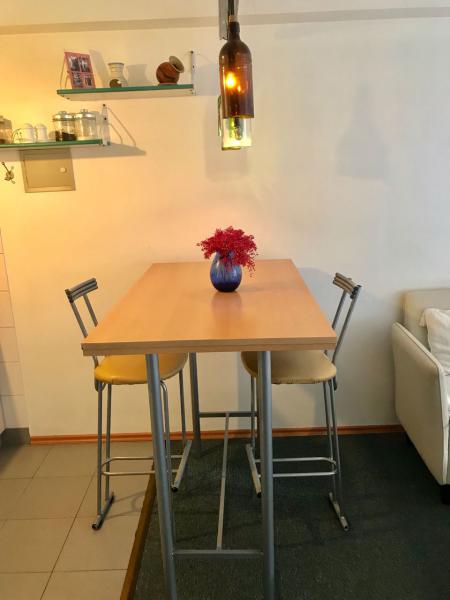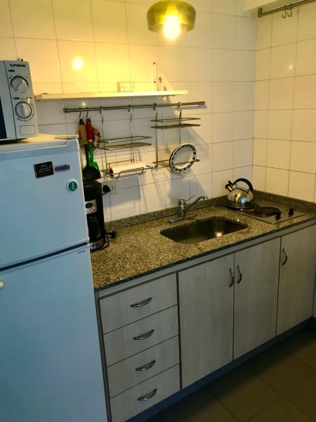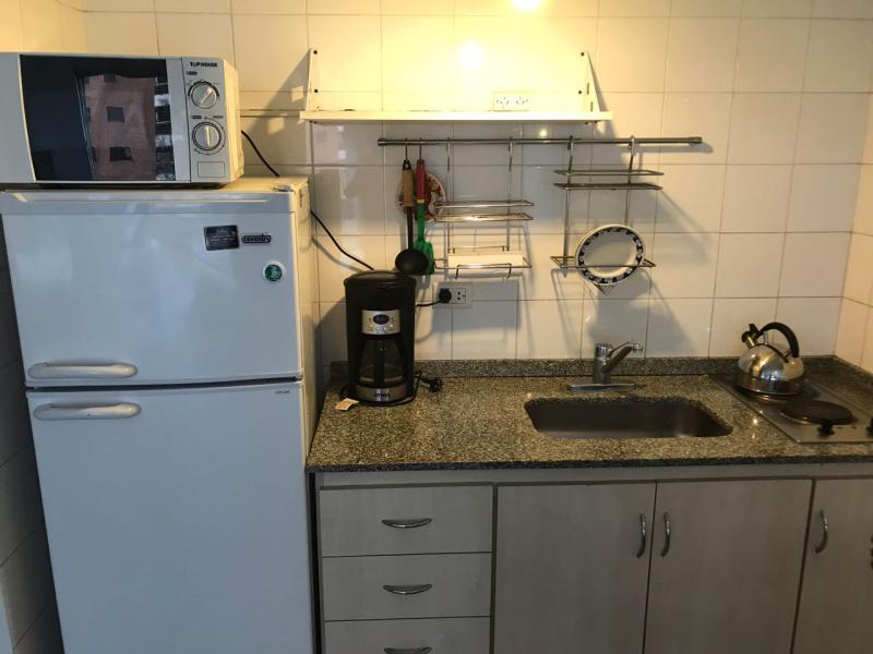 Comodidades: Cuenta con dos camas single, Tv con Cable, Sillon con dos cuerpos, barra desayunador, cocina tipo kitchinet con heladera con freezer, microondas, tostadora, y utensilios varios. Bano con ducha, aire acondionado. Servicio de Mucama y laudry