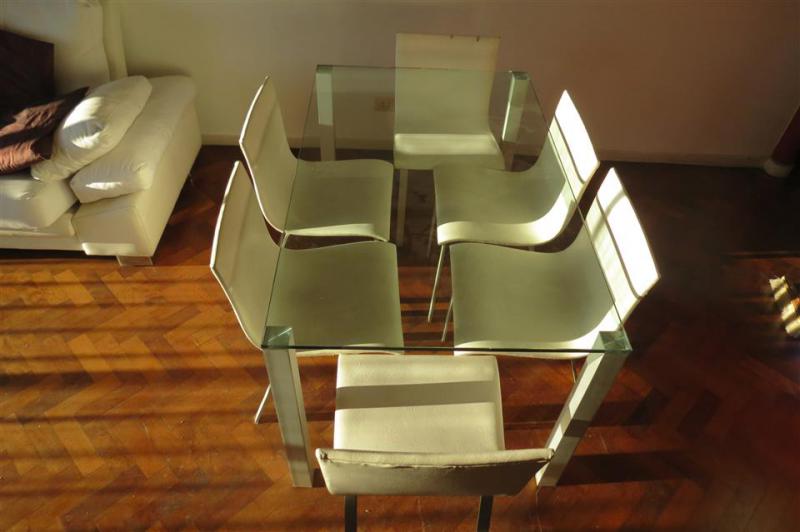 Comodidades: Cuenta con dos dormitorios uno con dos camas individuales y el otro con una cama individual y escritorio, Living comedor con sillon de dos cuerpos, mesa con cuatro sillas, Tv Smart. Aire acondicionado. Cocina integrada con heladera con freezer, cocina con horno, microondas, tostadora, vajilla y varios utensilios de cocina. Lavarropas. Bano completo con banadera y bidet. Balcon