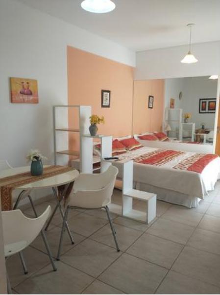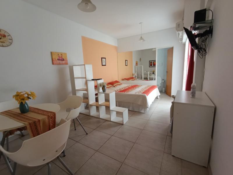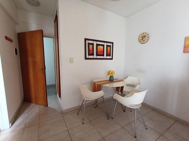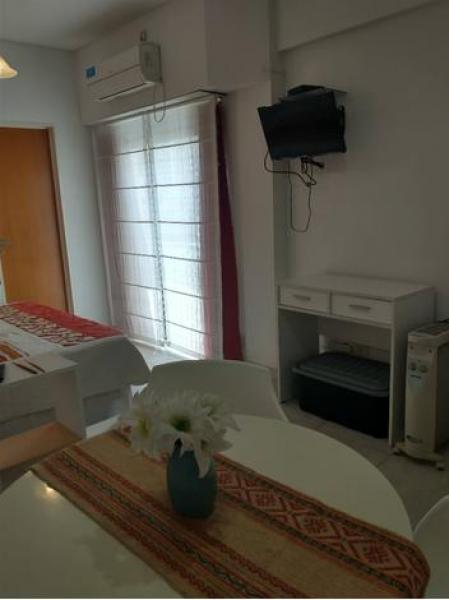 Comodidades: El departamento cuenta con 25 mts bien distribuidos, ideal para una o dos personas. Es muy luminoso y ventilado, con un pequeno balcon que aporta luz natural y aire fresco. Dispone de placard, TV LED, aire acondicionado frio y una cocina independiente equipada con horno a gas de cuatro hornallas, heladera bajo mesada, vajilla y mesa comedor para tres personas. El bano es completo, con banera, tiene calefaccion electrica.
