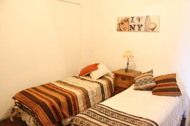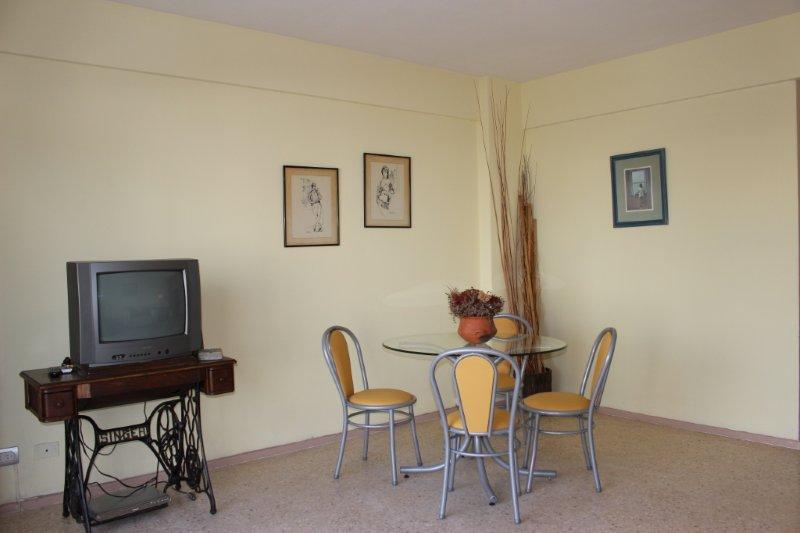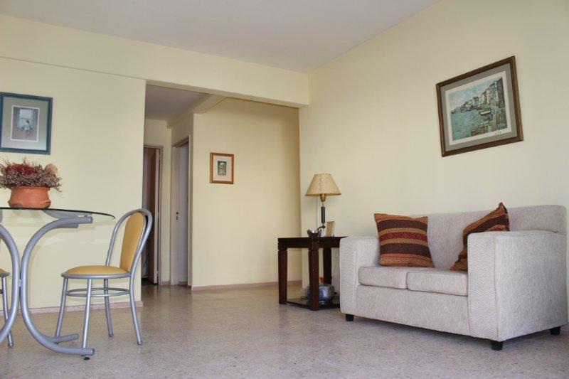 Comodidades: departamento con dos dormitorios, cada dormitorio tiene 2 camas sommier que pueden unirse comodamente convirtiendose en queen size. Amplio Living-Comedor, sillon de dos cuerpos, mesa con 4 sillas, Cocina amplia con desayunador, utensilios de cocina, Baño completo con bañadera y Bidet, TV con cable, Equipo de sonido,lavadero, lavarropas.