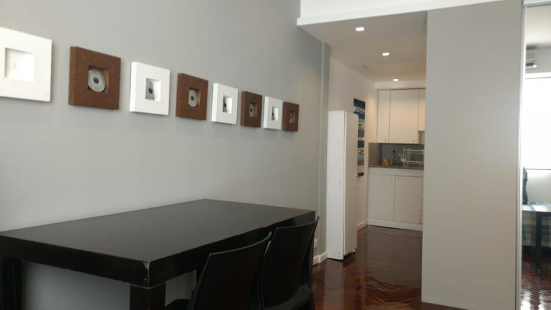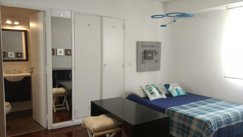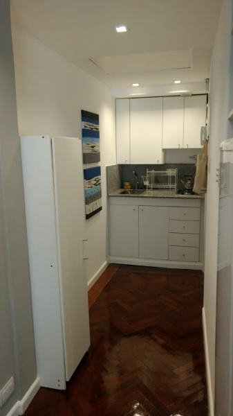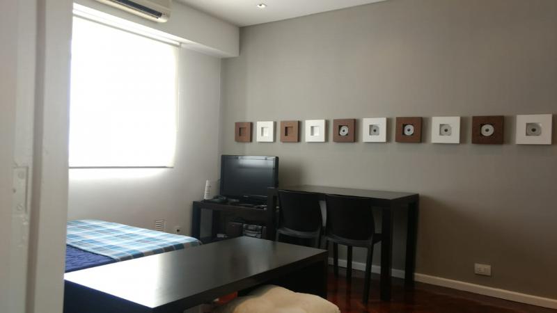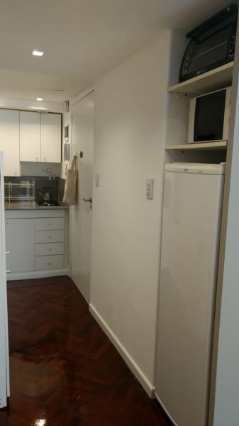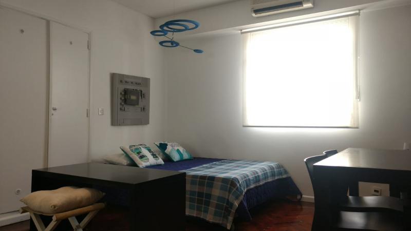 Comodidades: Cuenta con cama doble, placard, aire acondicionado, mesa para TV, TV LCD con cable, cocina kitchinet con anafe de dos hornallas, utensilios varios, heladera bajo mesada, bano completo.