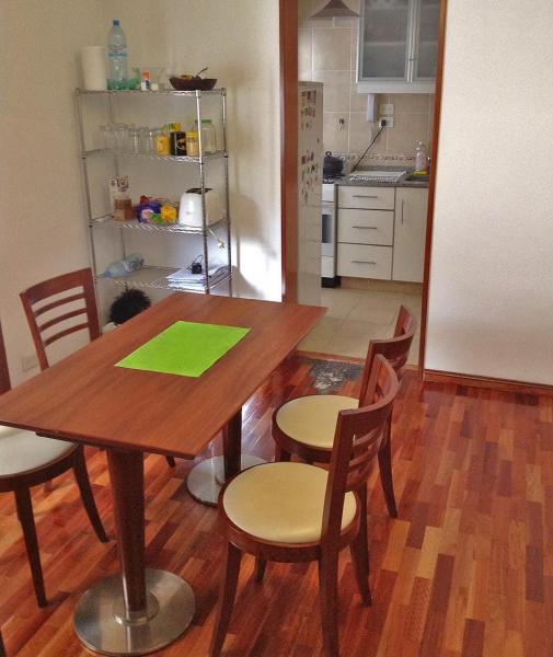 Comodidades: El departamento cuenta con living-comedor, con mesa con 4 sillas, escritorio algunas estanterias. Habitacion con placard. Cocina con heladera con freezer, tostadera, utensilios, armarios y cocina con horno. Lavadero. Bano con ducha.