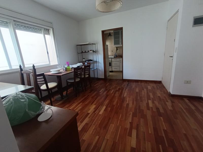 Comodidades: El edificio es tipo torre con 3 ascensores y porteria. Departamento todo externo con lavadero independiente, living comedor con mesa, 4 sillas, estanteria, dormitorio con placard y cama matrimonial, cocina con heladera, cocina de 4 hornallas, bano con ducha y bidet.