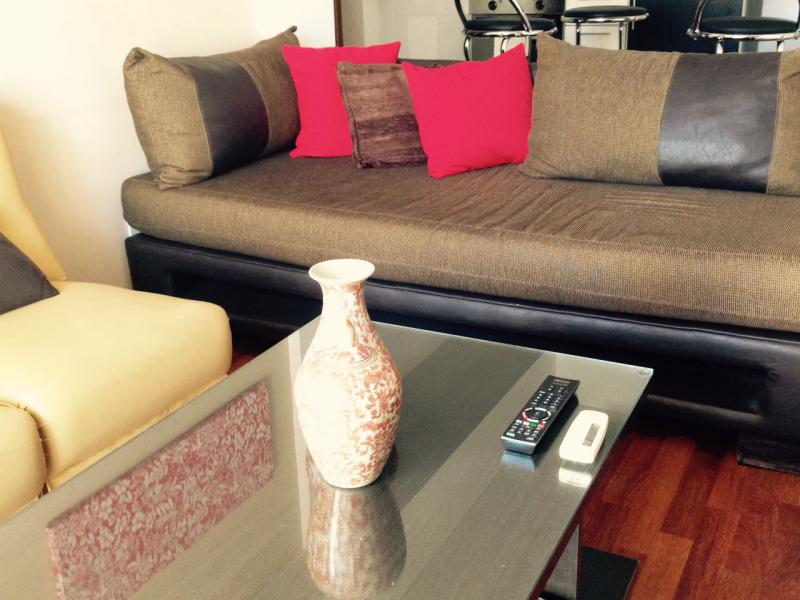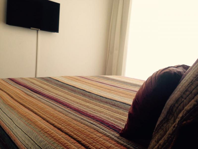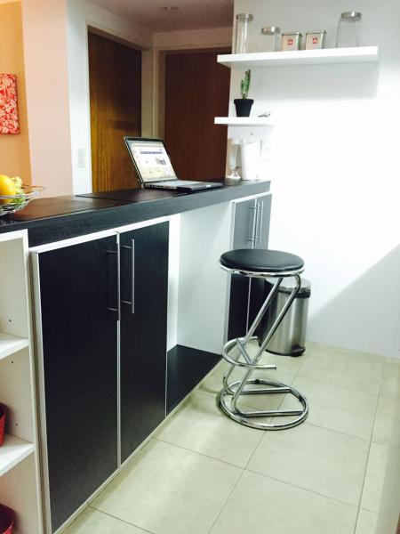 Comodidades: Dormitorio con cama de dos plazas, amplio placard, acceso a balcon corrido, TV LED, aire acondicionado, living comedor con sillon de dos cuerpos, TV LED, mesa barra desayunador, cocina integrada con heladera con freezer, microondas, anafe electrico, banquetas, bano completo con banera. Balcon con mesa y sillas de exterior.