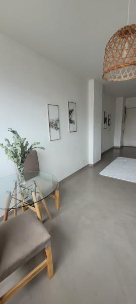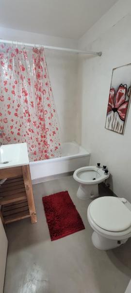 Comodidades: El departamento cuenta con cocina equipada con heladera pequeña, anafe eléctrico, horno eléctrico, living con mesita con 2 sillas, sillón pequeño, puff, habitación cuenta con 2 camas single, amplio placard en habitación y otro en pasillo, baño completo con ducha, bidet y bañera. Aire acondicionado. Edificio con seguridad. Acepta Mascotas.