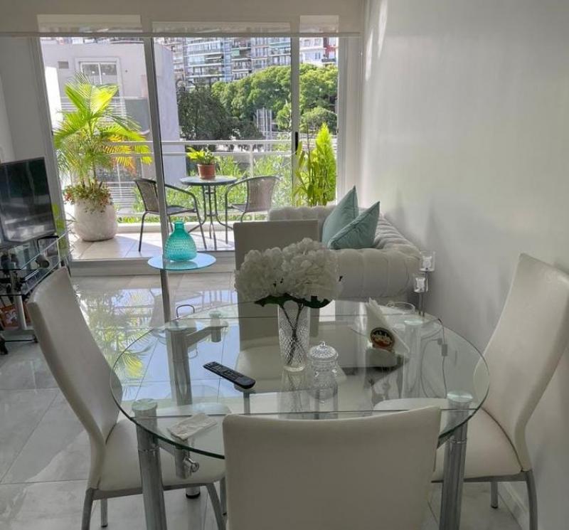 Comodidades: Cuenta con living comedor con sillon, aire acondicionado frio/calor, TV led, mesa para cuatro personas, cocina independiente con cafetera, horno electrico, cocina electrica con horno empotrador, heladera con freezer, vajilla completar para cuatro y utensillos para cocinar, habitacion con cama doble y placard, bano con banera y ducha, balcon con mesita y sillas. El edificio cuenta con piscina en ultimo piso, lavadero, hidromasajes, sauna, salon de fiestas y dos parrillas. Portero visor y llave magnetica.